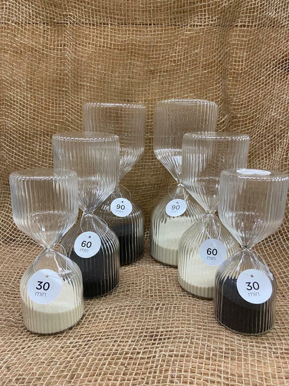 Ampulheta Canelado em Vidro, Preto e Bege